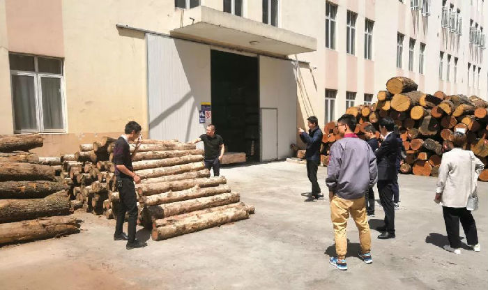 会后,课题组一行到裕华木业中试基地实地察看了课题相关木材(柚木)的等级,并共同探讨制定了木材剖分试验等关键技术的试验方案。